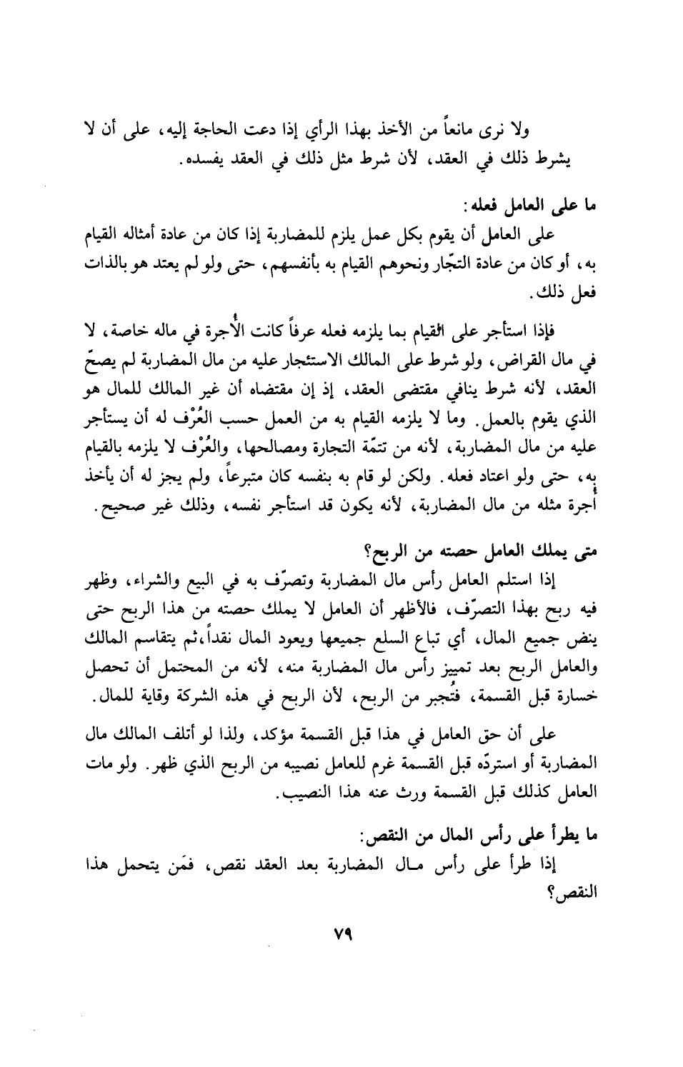على العامل ان يقوم بكل عمل يلزم للمضاربة إذا كان من عادة أمثاله القيام به، أو كان من عادة التجّار ونحوهم القيام به بأنفسهم، حتى ولو لم يعتد هو بالذات فعل ذلك.