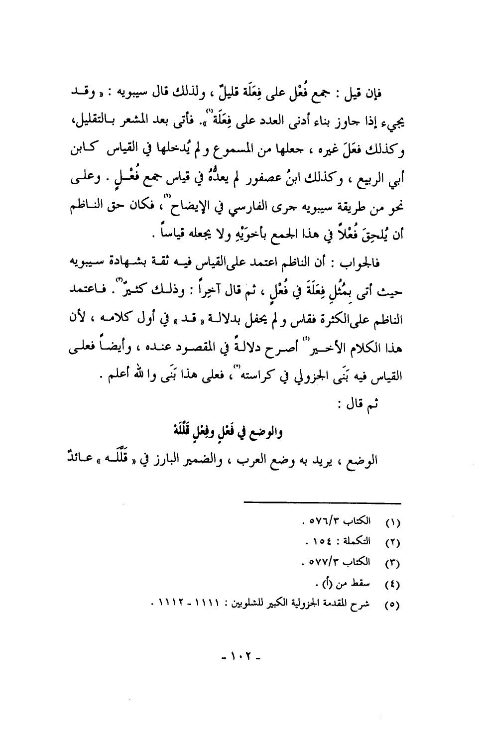 فالجواب: أن الناظم اعتمد على القياس فيه ثقة بشهادة سيبويه حيث أتى بِمُثُلِ فِعَلَةَ في فُعْل، ثم قال آخراً: وذلك كثير. فاعتمد الناظم على الكثرة فقاس ولم يحفل بدلالة "قد" في أول كلامه، لأن هذا الكلام الأخير أصرح دلالة في المقصود عنده، وأيضاً فعلى القياس فيه بَنَى الجوزلي في كراسته، فعلى هذا بَنَى والله أعلم.