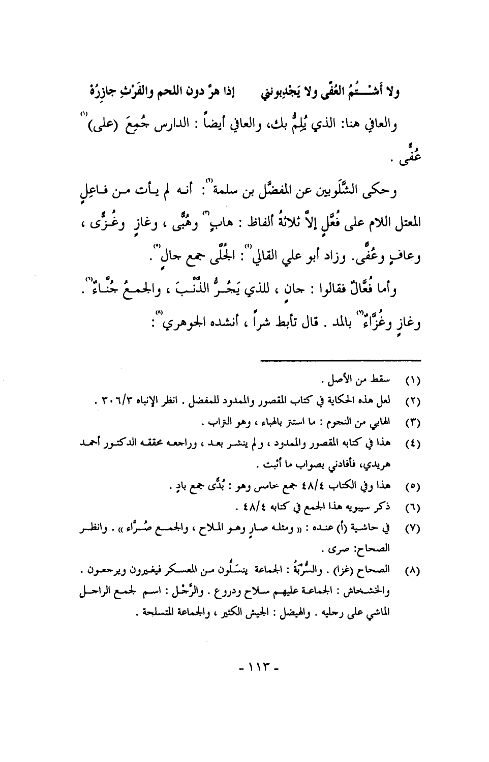وأما فُعَّالٌ فقالوا: جانٍ، للذي يَجُرُّ الذَّنبَ، والجمعُ جُنَّاءٌ. وغازٍ وغُزَّاءٌ بالمد. قال تأبط شراً، أنشده الجوهري: