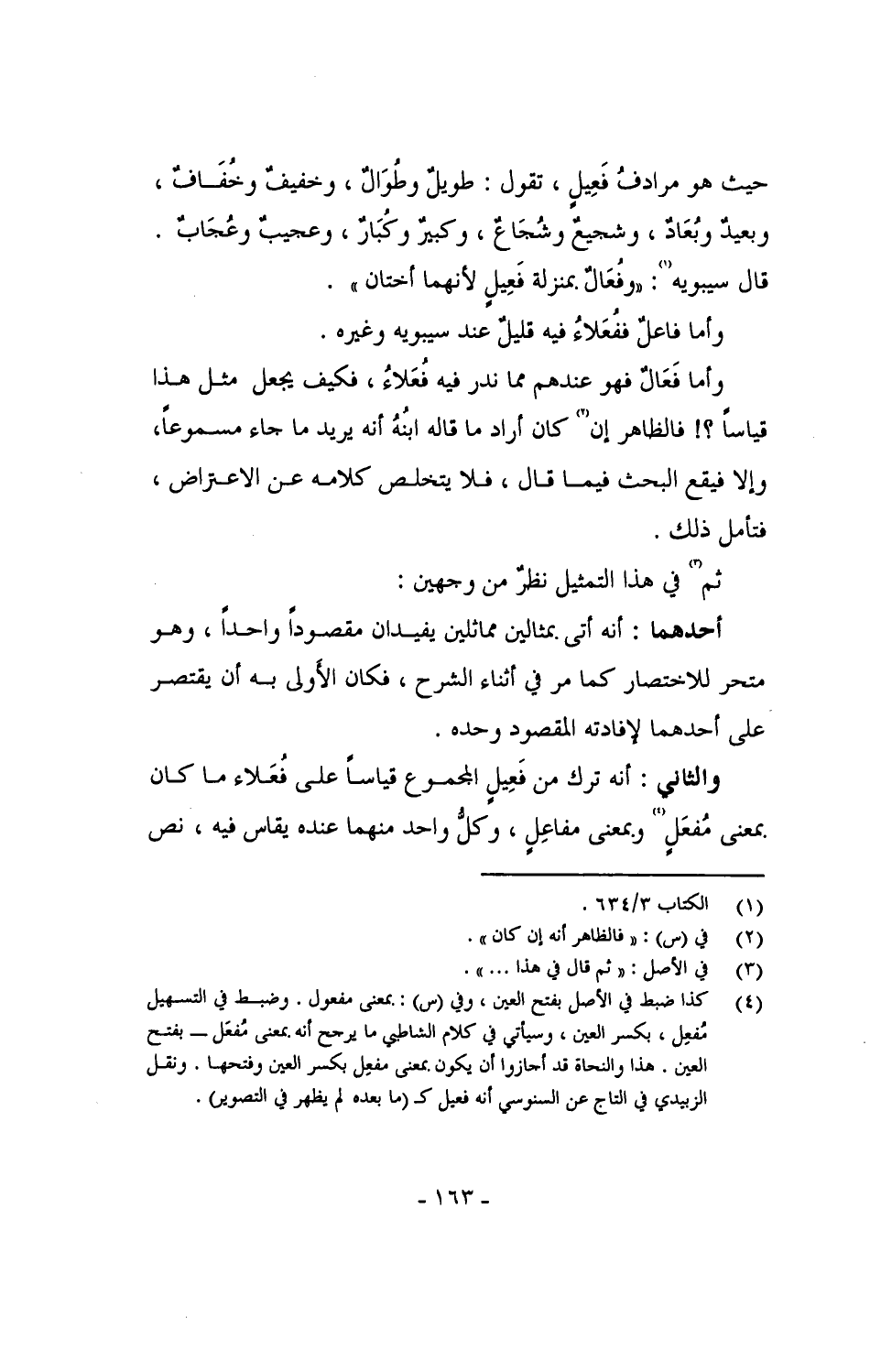 والثاني: أنه ترك من فَعِيلٍ المجموع قياساً على فُعَلاء ما كان بمعنى مُفعَلٍ وبمعنى مفاعِلٍ، وكل واحد منهما عنده يقاس فيه، نص
