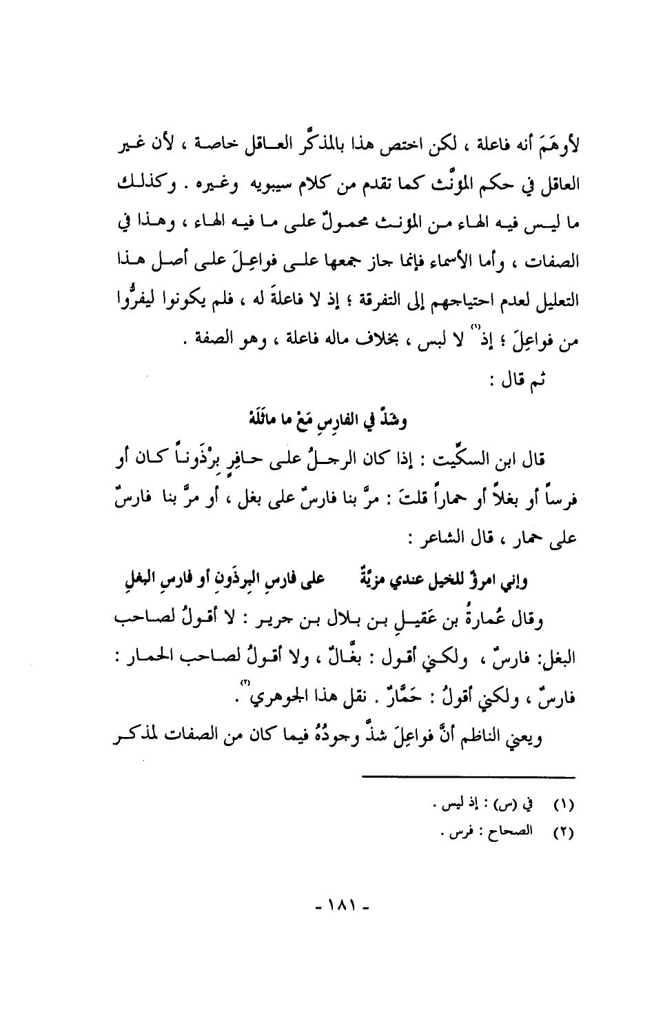 وشَذْ في الفارس مَعْ ما ماثَلَهْ