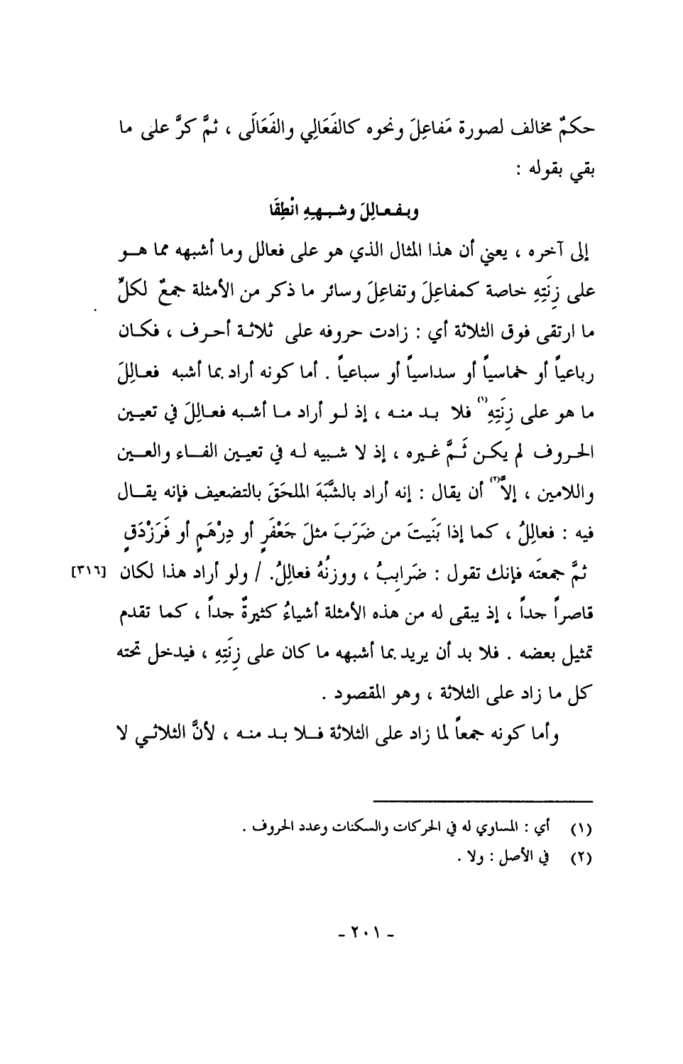 حكمٌ مخالف لصورة مَفاعِلَ ونحوه كالفَعَالِي والفَعَالَى، ثم كرَّ على ما بقي بقوله: