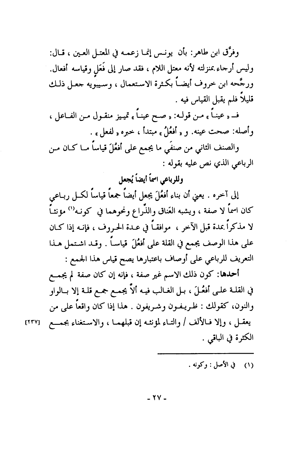 والصنف الثاني من صنفي ما يجمع على أفعُلَ قياساً ما كان الرباعي الذي نص عليه بقوله: