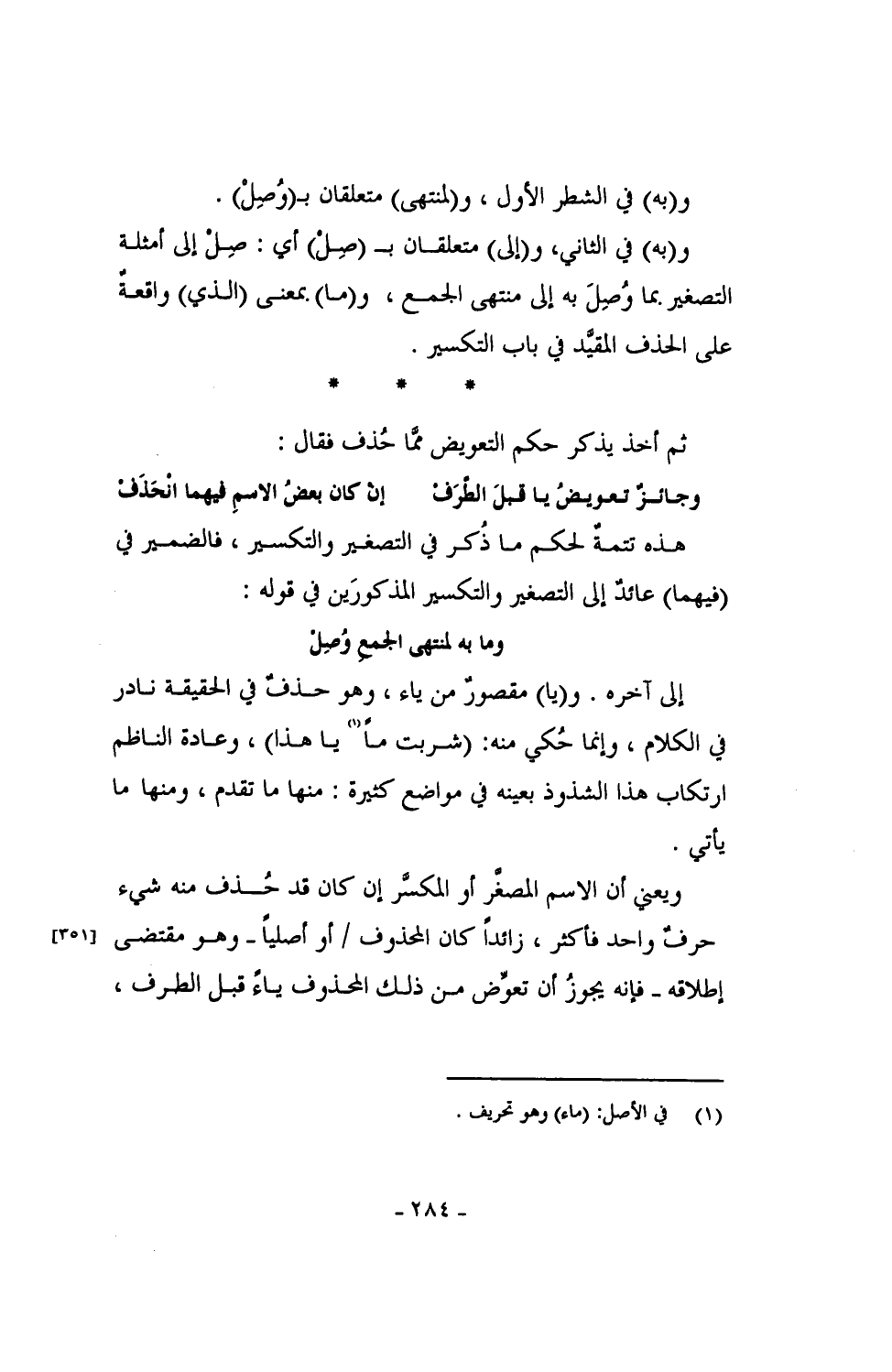 ثم أخذ يذكر حكم التعويض مما حُذف فقال: