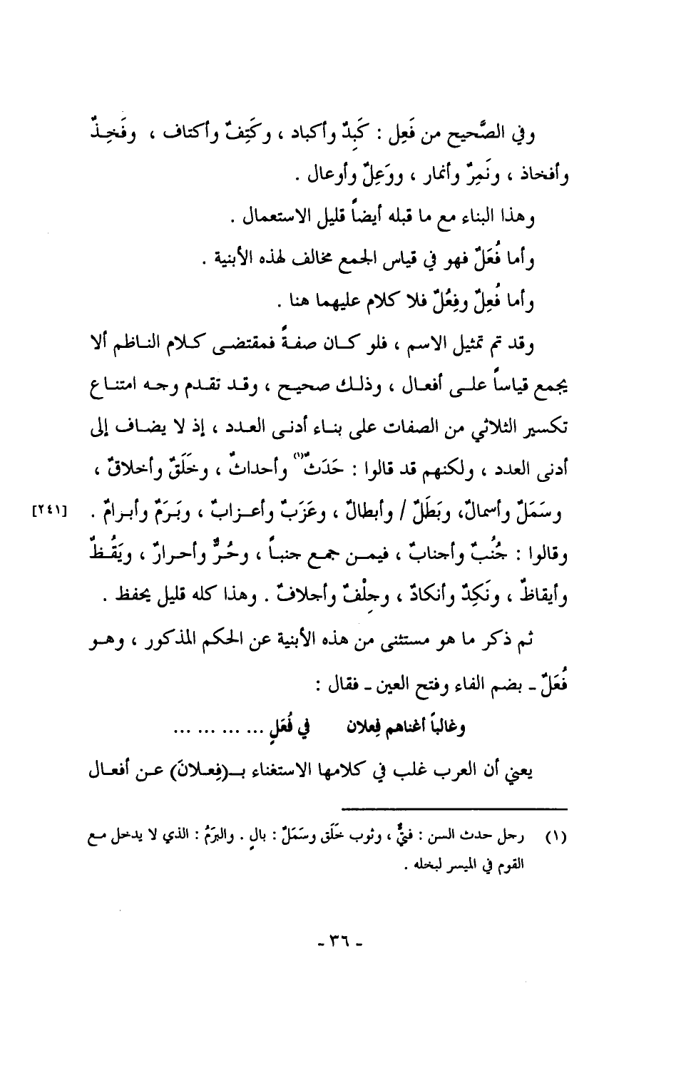 ثم ذكر ما هو مستثنى من هذه الأبنية عن الحكم المذكور، وهو فُعَلٌ - بضم الفاء وفتح العين - فقال: