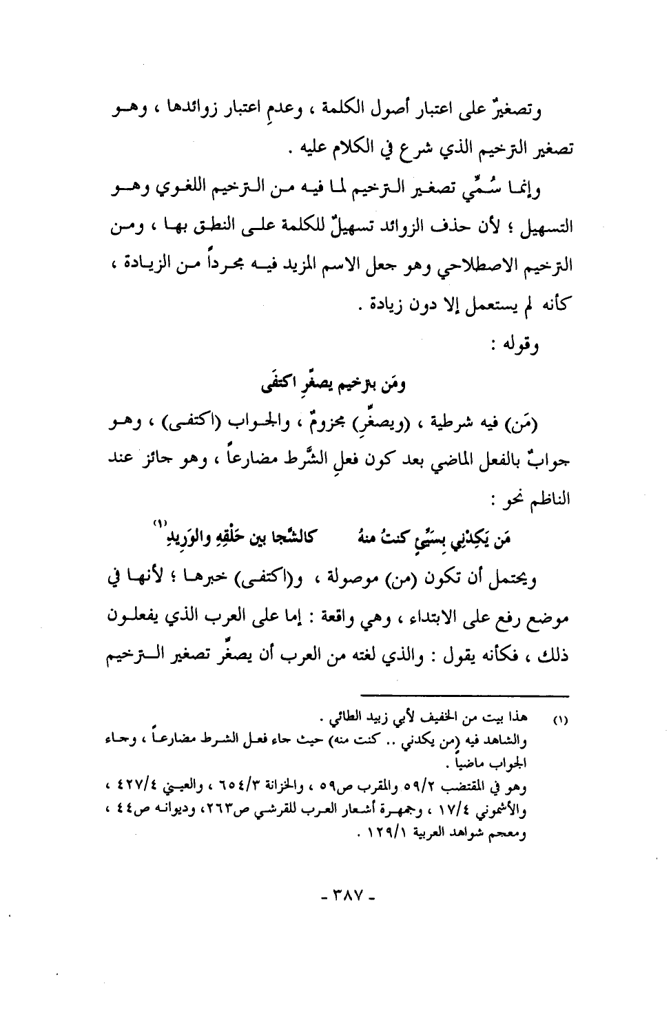 ومَن بترخيم يصغِّرِ اكتفَى