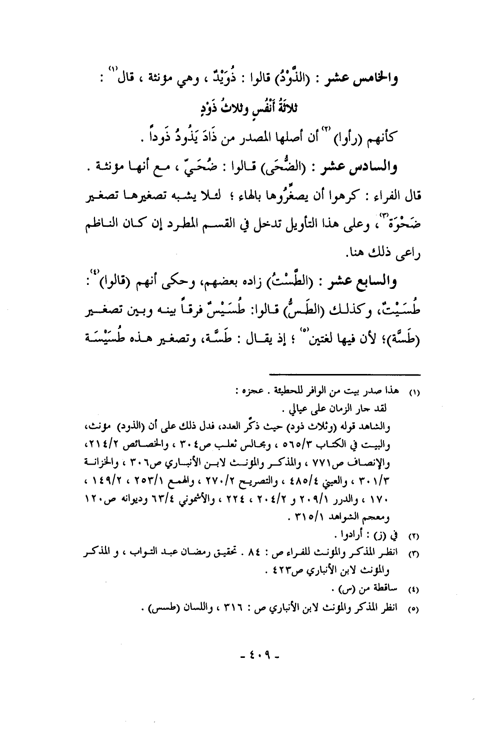 والخامس عشر: (الذَّوْدُ) قالوا: ذُوَيْدٌ، وهي مؤنثة، قال: