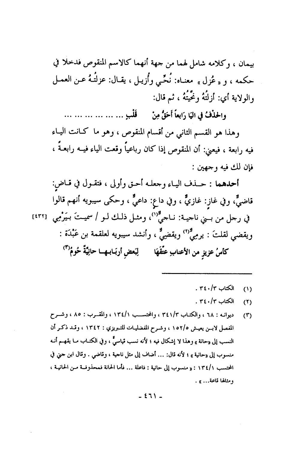 والحذفُ في اليا رابعاً أحقُّ مِنْ قلبٍ ... ... ... ... ... ...