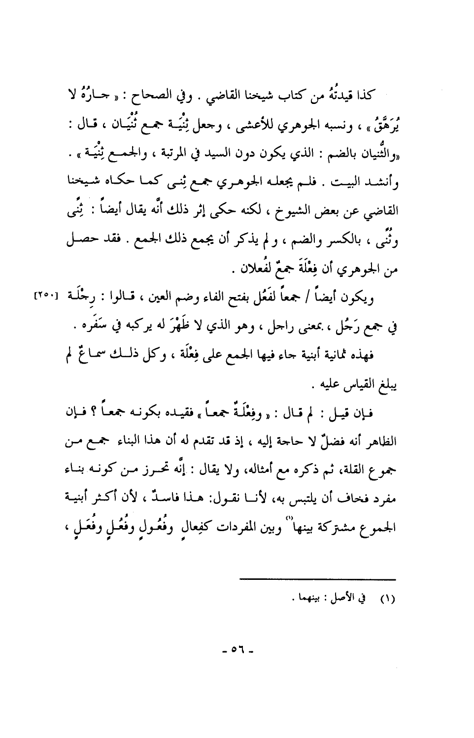 فإن قيل: لم قال: "وفِعْلَةٌ جمعاً" فقيده بكونه جمعاً؟ فإن الظاهر أنه فضلٌ لا حاجة إليه، إذا قد تقدم له أن هذا البناء جمع من جموع القلة، ثم ذكره مع أمثاله، ولا يقال: إنه تحرز من كونه بناء مفرد فخاف أن يلتبس به، لأنا نقول: هذا فاسد، لأن أكثر أبنية الجموع مشتركة بينها وبيم المفردات كفِعالٍ وفُعُولٍ وفُعُلٍ وفُعَلٍ،