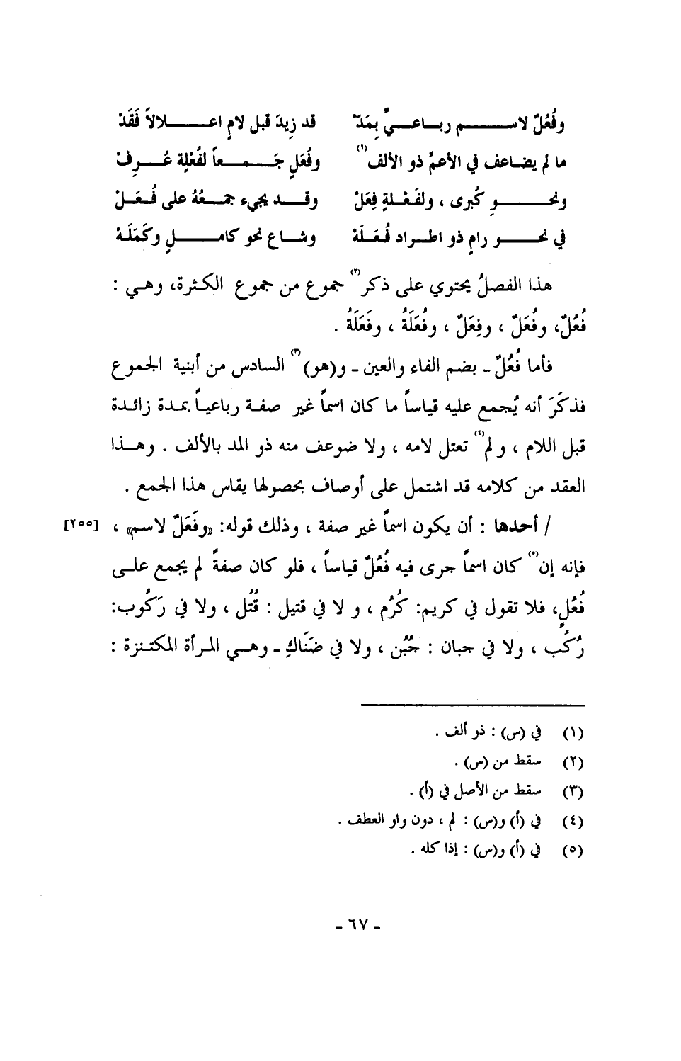 هذا الفصلُ يحتوي على ذكر جموع من جموع الكثرة، وهي: فُعُلٌ، وفُعَلٌ، وفِعَلٌ، وفُعَلَةُ، وفَعَلَةُ.