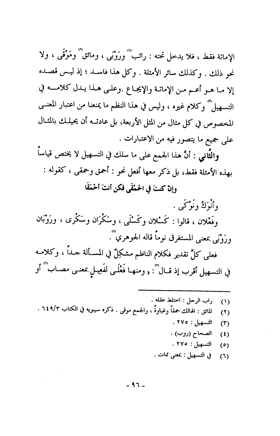 والثاني: أن هذا الجمع على ما سلك في التسهيل لا يختص قياساً بهذه الأمثلة فقط، بل ذكر معها أفعل نحو: أحمق وحمقى، كقوله: