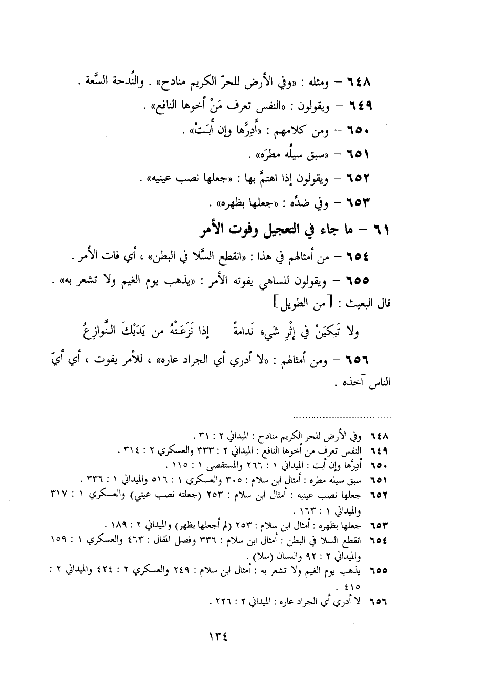«654» - من أمثالهم في هذا: «انقطع السّلا في البطن» ، أي فات الأمر.