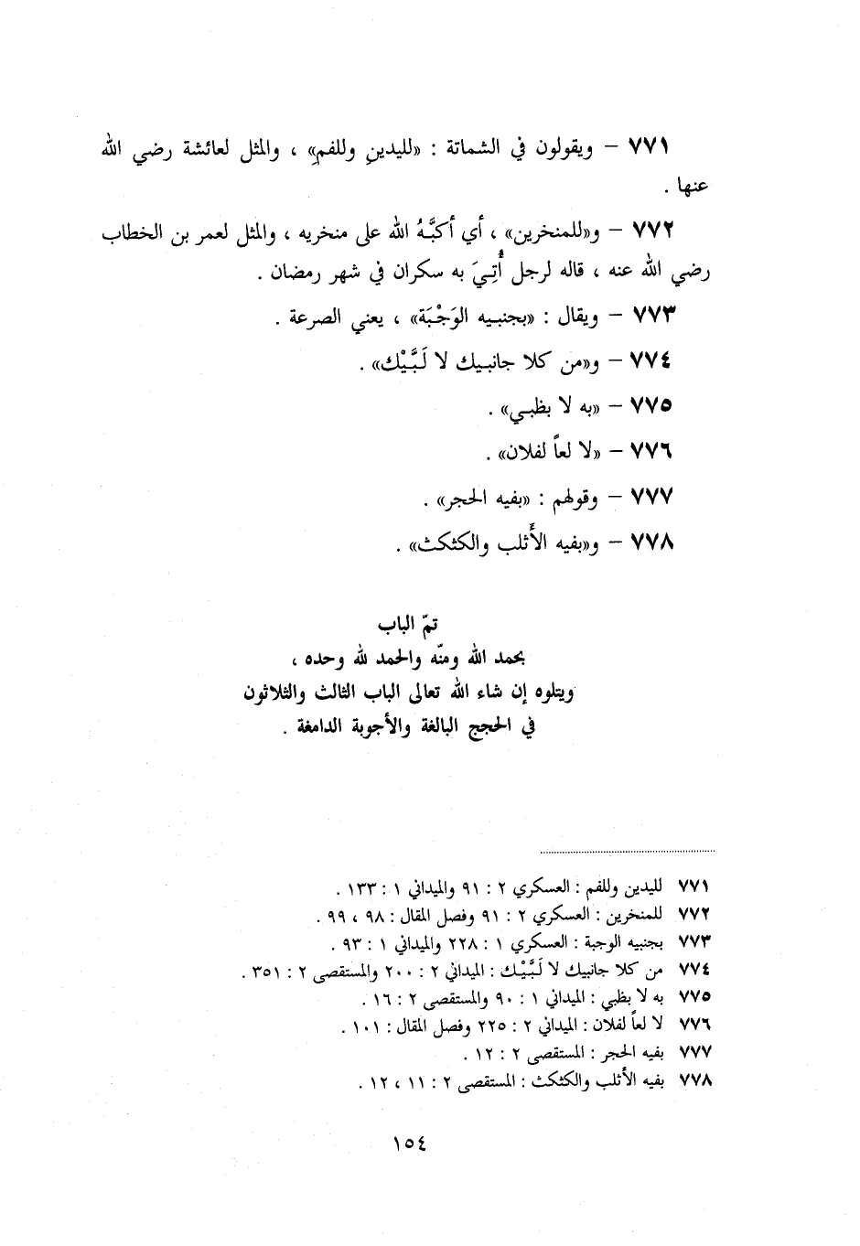 «771» - ويقولون في الشماتة: «لليدين وللفم» ، والمثل لعائشة رضي الله عنها.