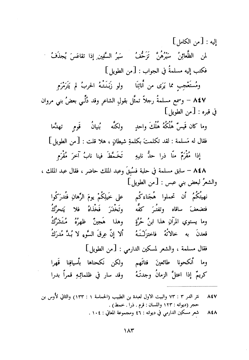«848» - سابق مسلمة في حلبة فسبق وعبد الملك حاضر، فقال عبد الملك، والشعر لبعض بني عبس: [من الطويل]
