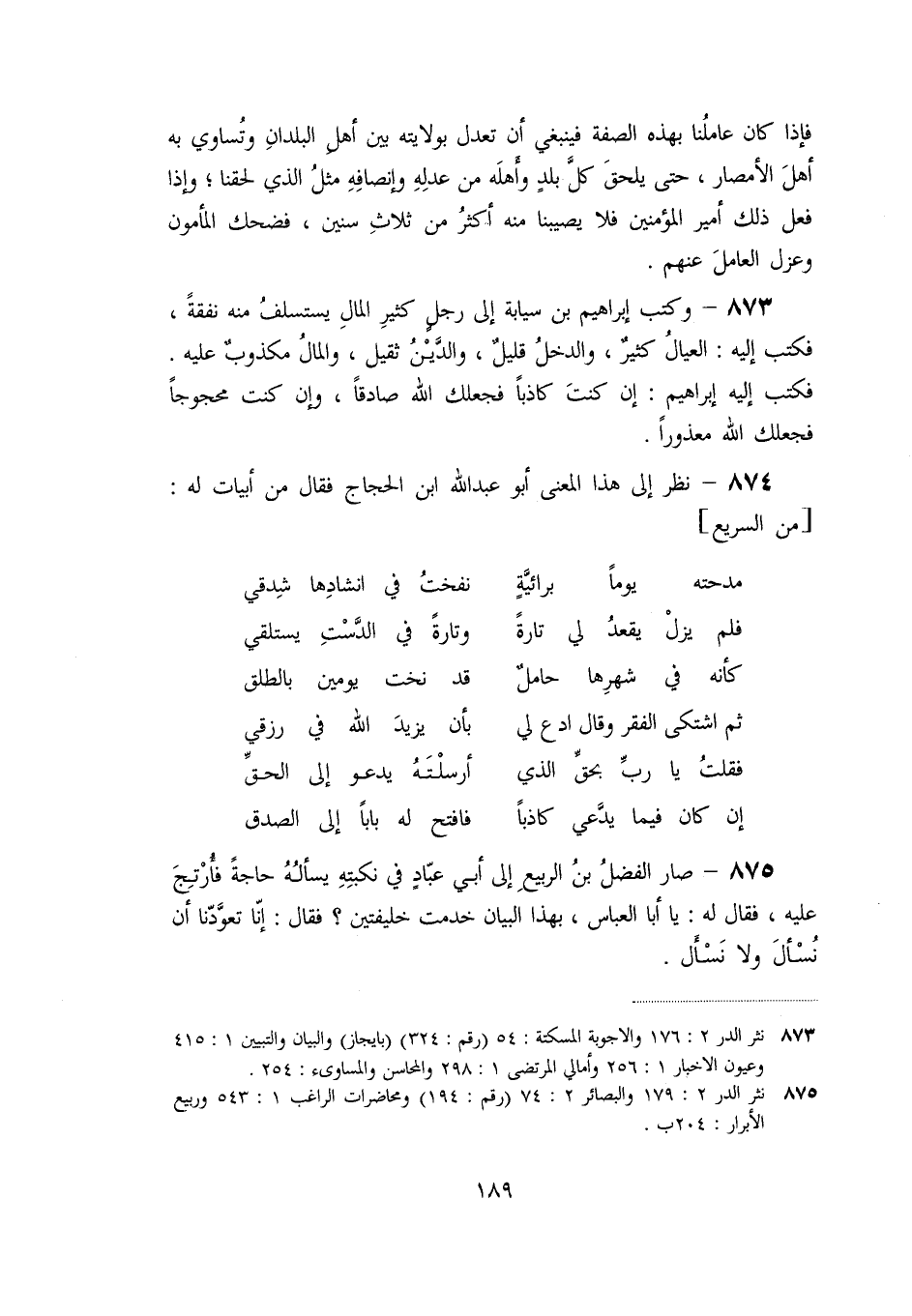 874- نظر إلى هذا المعنى أبو عبد الله ابن الحجاج فقال من أبيات له: