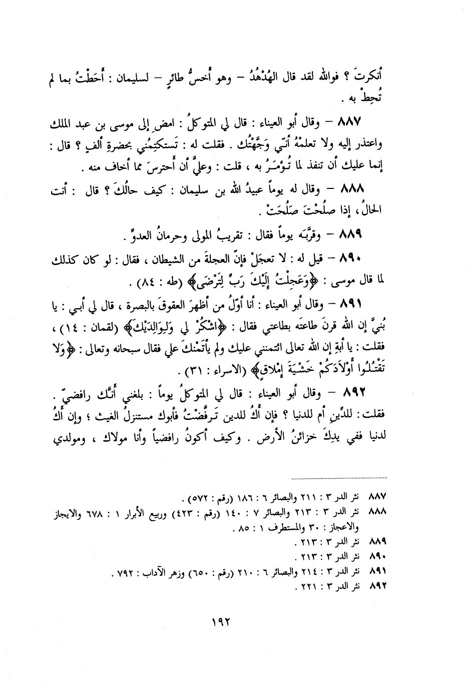 «890» - قيل له: لا تعجل فإنّ العجلة من الشيطان، فقال: لو كان كذلك لما قال موسى: وَعَجِلْتُ إِلَيْكَ رَبِّ لِتَرْضى