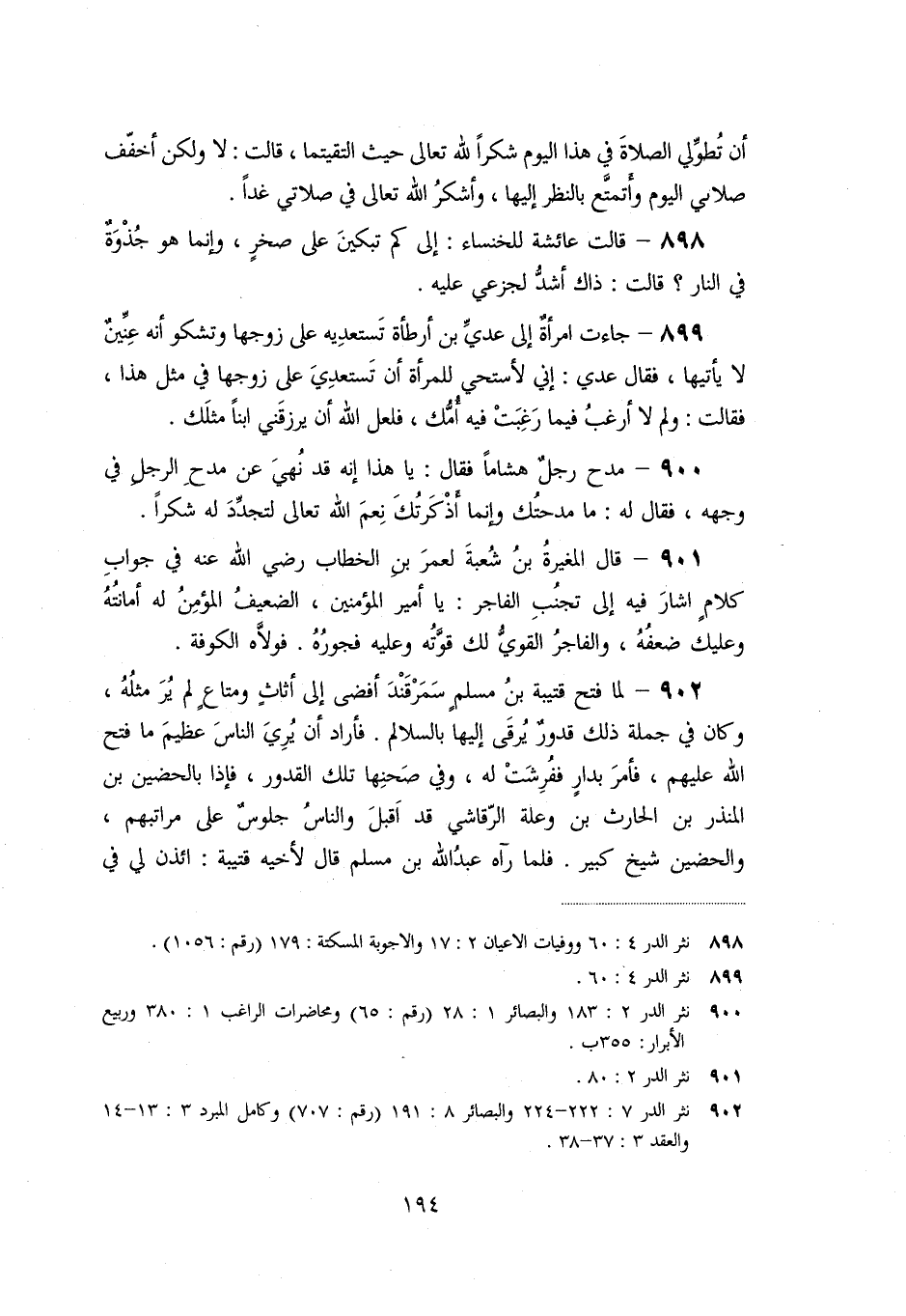 «900» - مدح رجل هشاما فقال: يا هذا إنه قد نهي عن مدح الرجل في وجهه، فقال له: ما مدحتك وإنما أذكرتك نعم الله تعالى لتجدّد له شكرا.