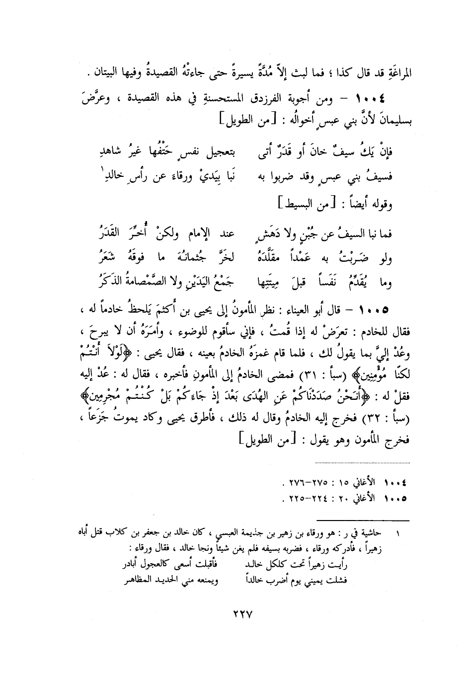 (سبأ: 32) فخرج إليه الخادم وقال له ذلك، فأطرق يحيى وكاد يموت جزعا، فخرج المأمون وهو يقول: [من الطويل]