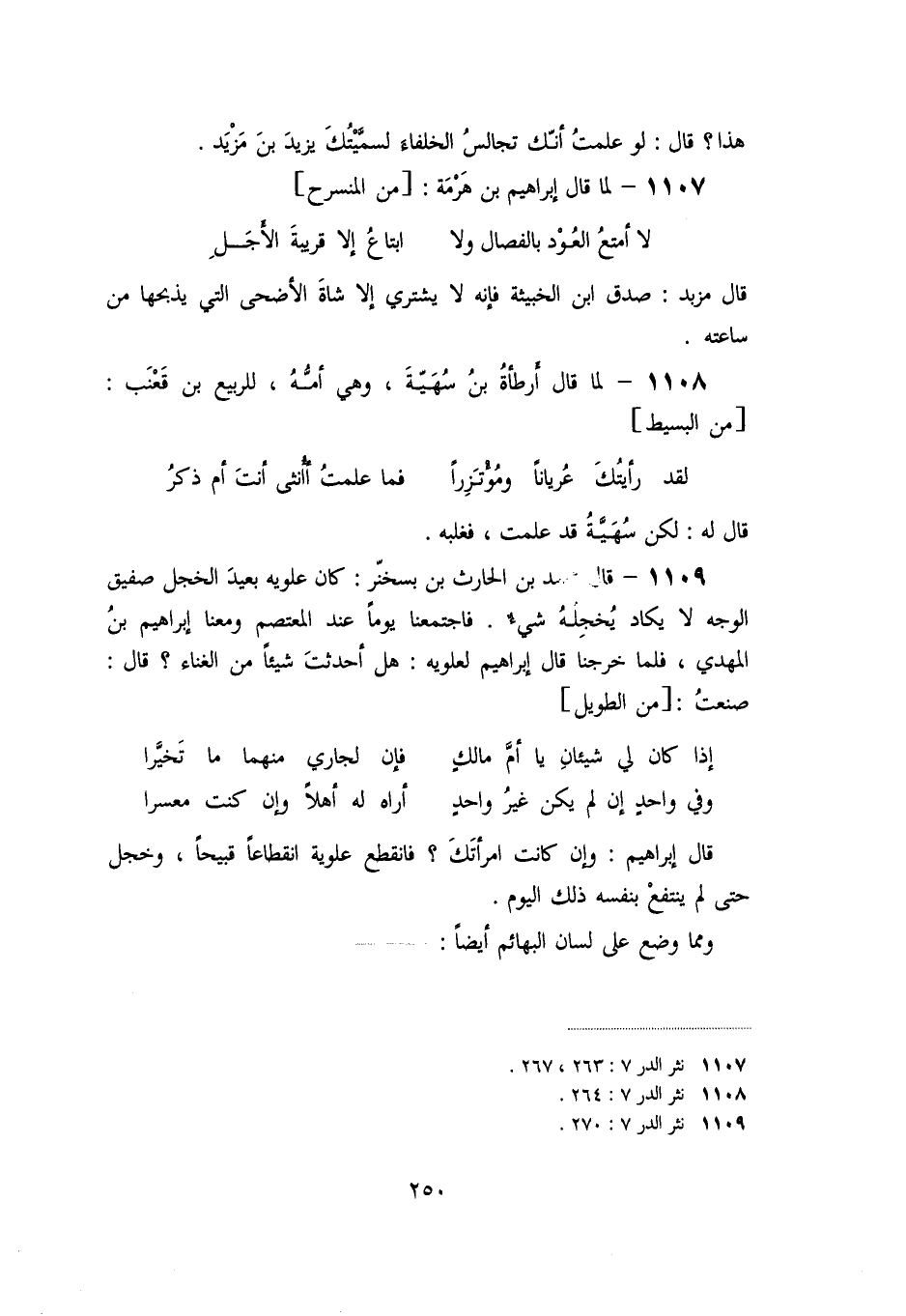 «1107» - لما قال إبراهيم بن هرمة: [من المنسرح]