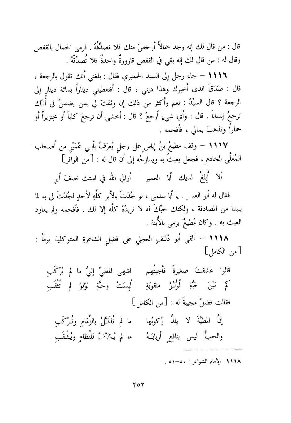 1117- وقف مطيع بن إياس على رجل يعرف بأبي عمير من أصحاب المعلّى الخادم، فجعل يعبث به ويمازحه إلى أن قال له: [من الوافر]