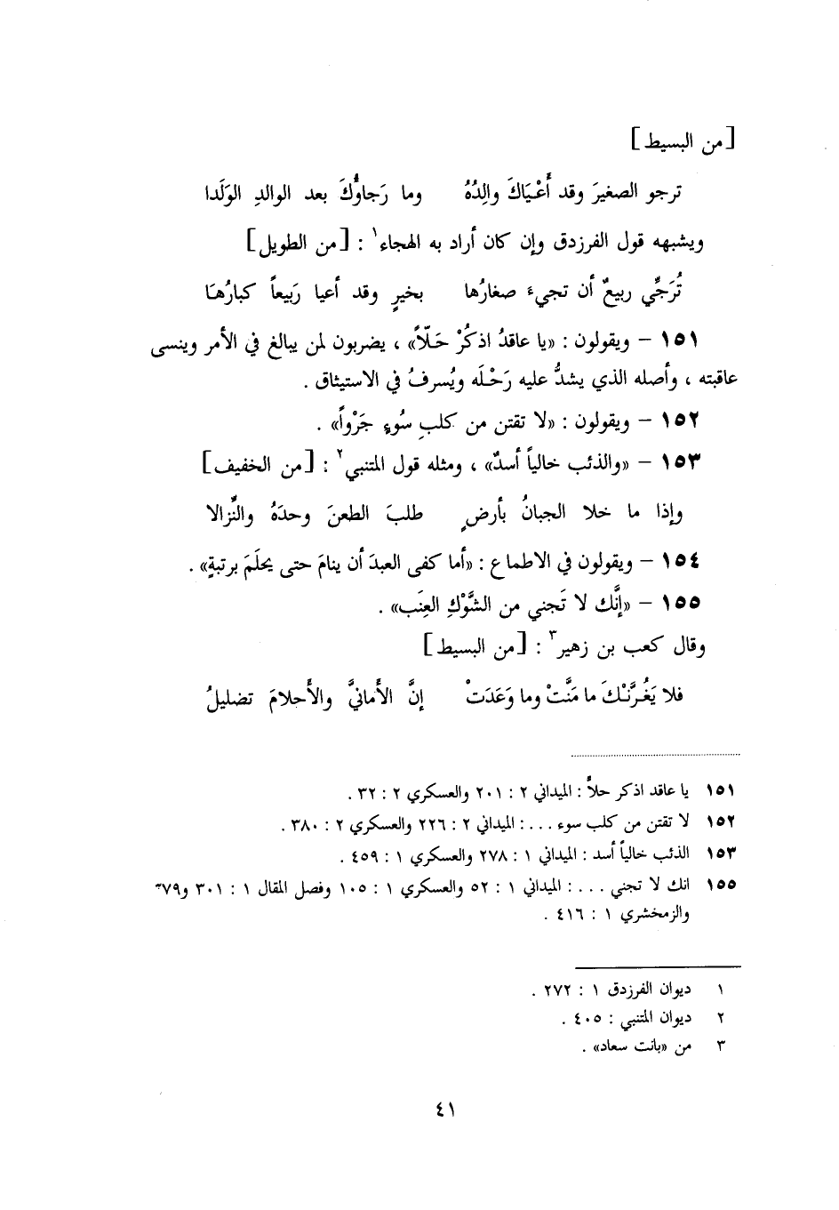 «153» - «والذئب خاليا أسد» ، ومثله قول المتنبي [2] : [من الخفيف]