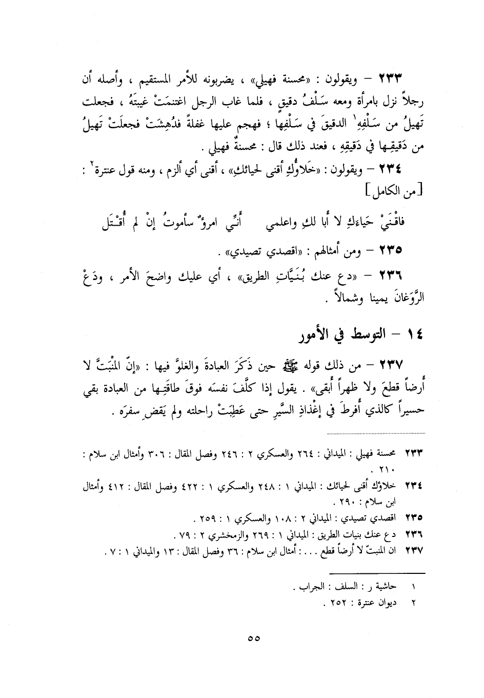 «236» - «دع عنك بنيّات الطريق» ، أي عليك واضح الأمر، ودع الرّوغان يمينا وشمالا.