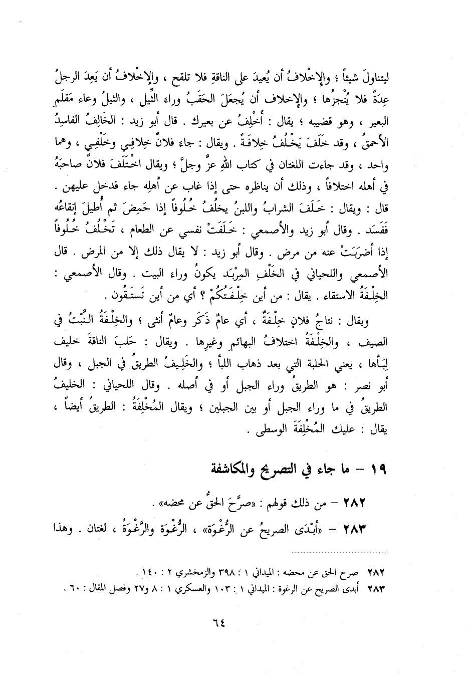 «282» - من ذلك قولهم: «صرّح الحقّ عن محضه» .