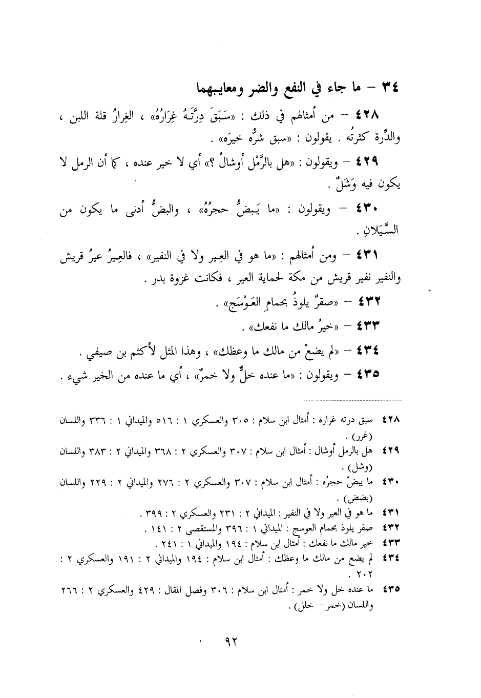 «431» - ومن أمثالهم: «ما هو في العير ولا في النفير» ، فالعير عير قريش والنفير نفير قريش من مكة لحماية العير، فكانت غزوة بدر.
