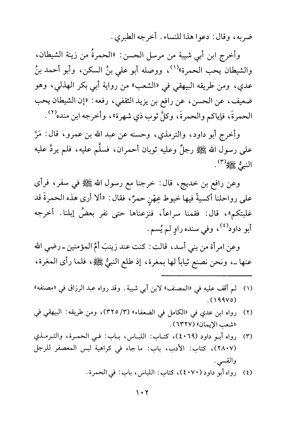 (٤) رواه أبو داود (٤٠٧٠)، كتاب: اللباس، باب: في الحمرة.