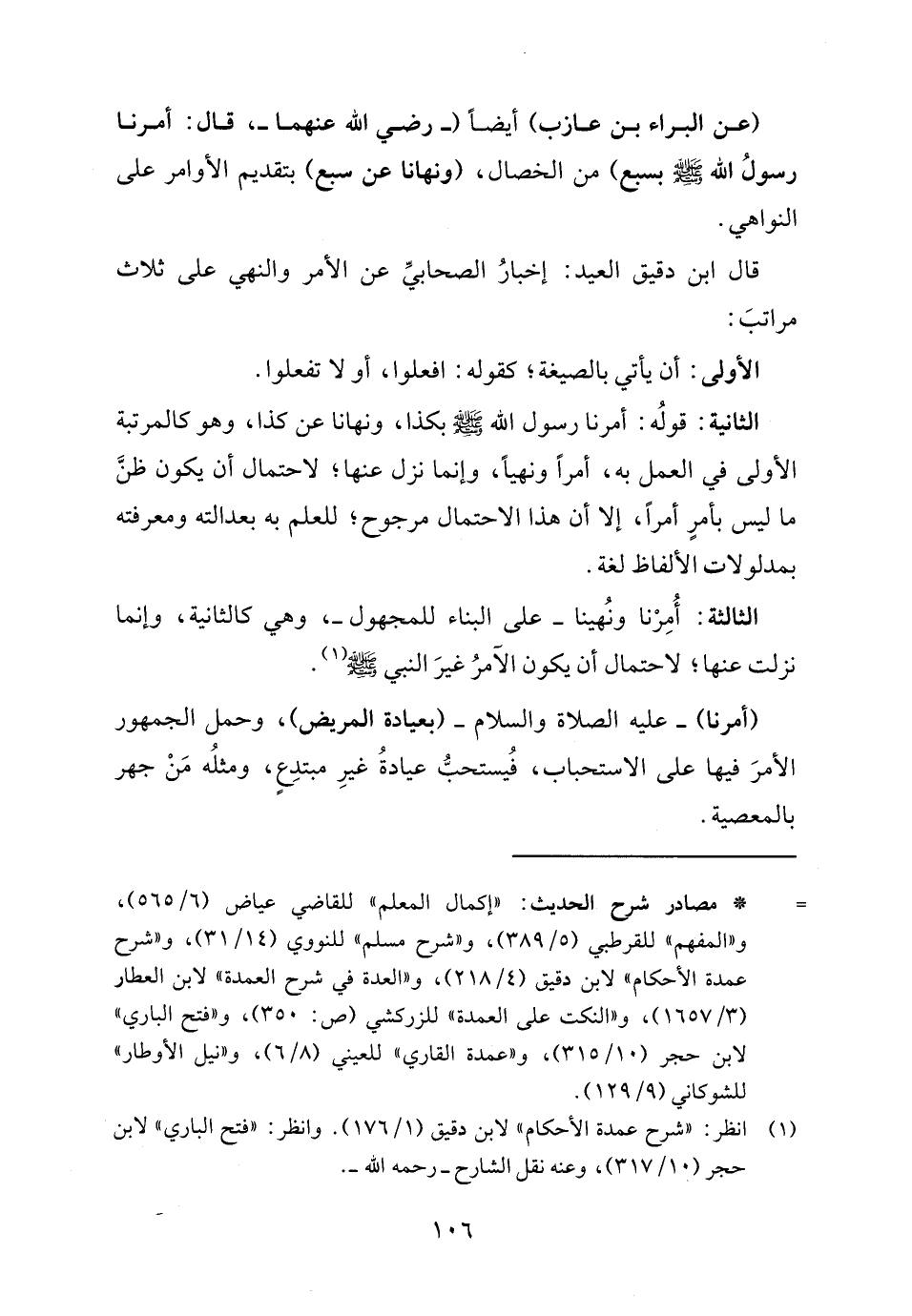 قال ابن دقيق العيد: إخبارُ الصحابيِّ عن الأمر والنهي على ثلاث مراتبَ: