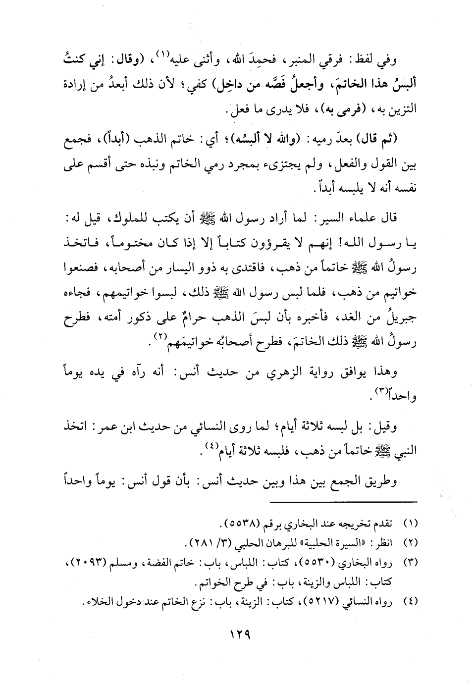 (٤) رواه النسائي (٥٢١٧)، كتاب: الزينة، باب: نزع الخاتم عند دخول الخلاء.