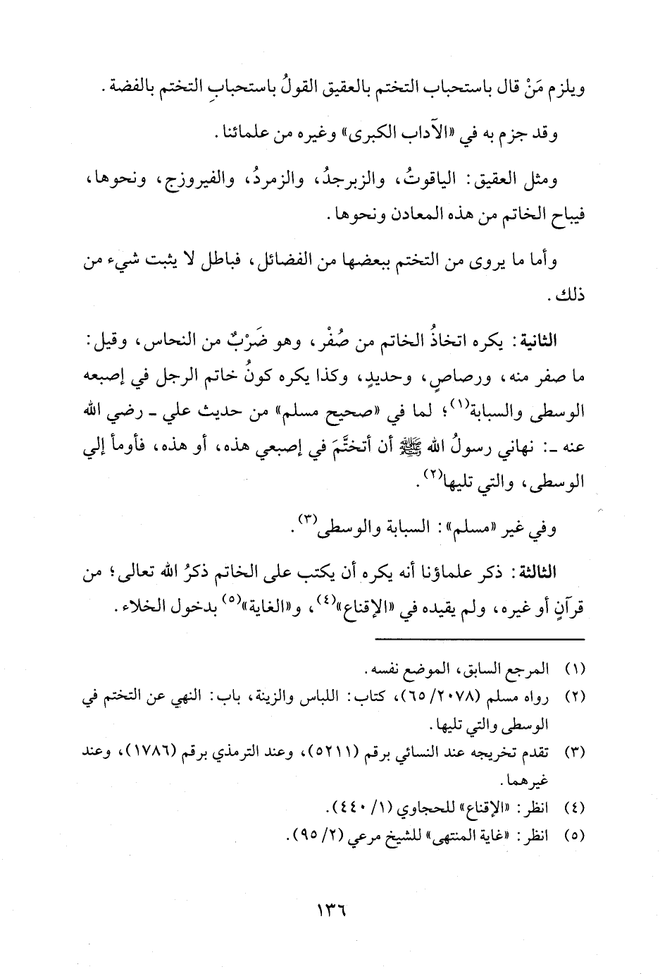 (٢) رواه مسلم (٢٠٧٨/ ٦٥)، كتاب: اللباس والزينة، باب: النهي عن التختم في الوسطى والتي تليها.