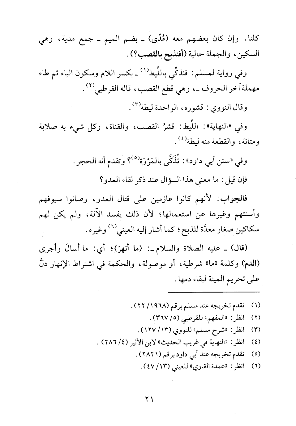 وفي رواية لمسلم: فنذكِّي باللِّيط (١) -بكسر اللام وسكون الياء ثم طاء مهملة آخر الحروف-، وهي قطع القصب، قاله القرطبي (٢).