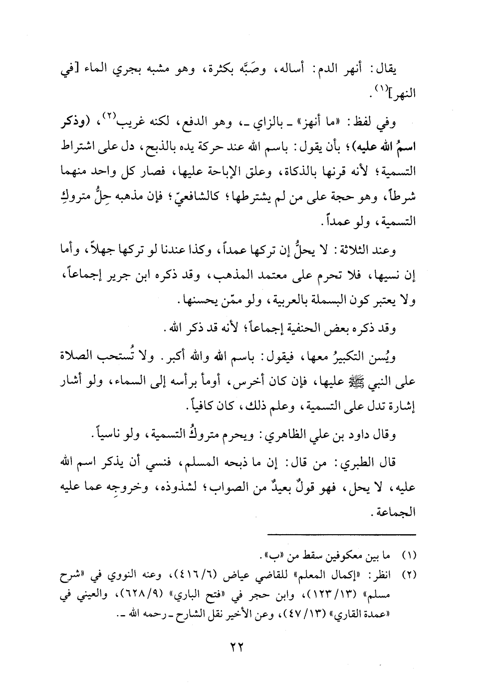 (٢) انظر: "إكمال المعلم" للقاضي عياض (٦/ ٤١٦)، وعنه النووي في "شرح مسلم" (١٣/ ١٢٣)، وابن حجر في "فتح الباري" (٩/ ٦٢٨)، والعيني في "عمدة القاري" (١٣/ ٤٧)، وعن الأخير نقل الشارح -رحمه الله-.