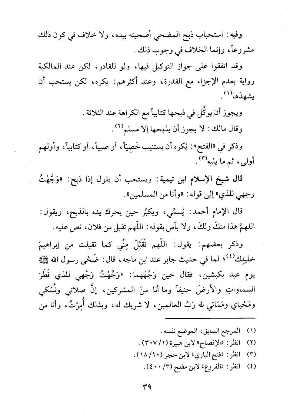 وفيه: استحباب ذبح المضحي أضحيته بيده، ولا خلاف في كون ذلك مشروعًا، وإنما الخلاف في وجوب ذلك.