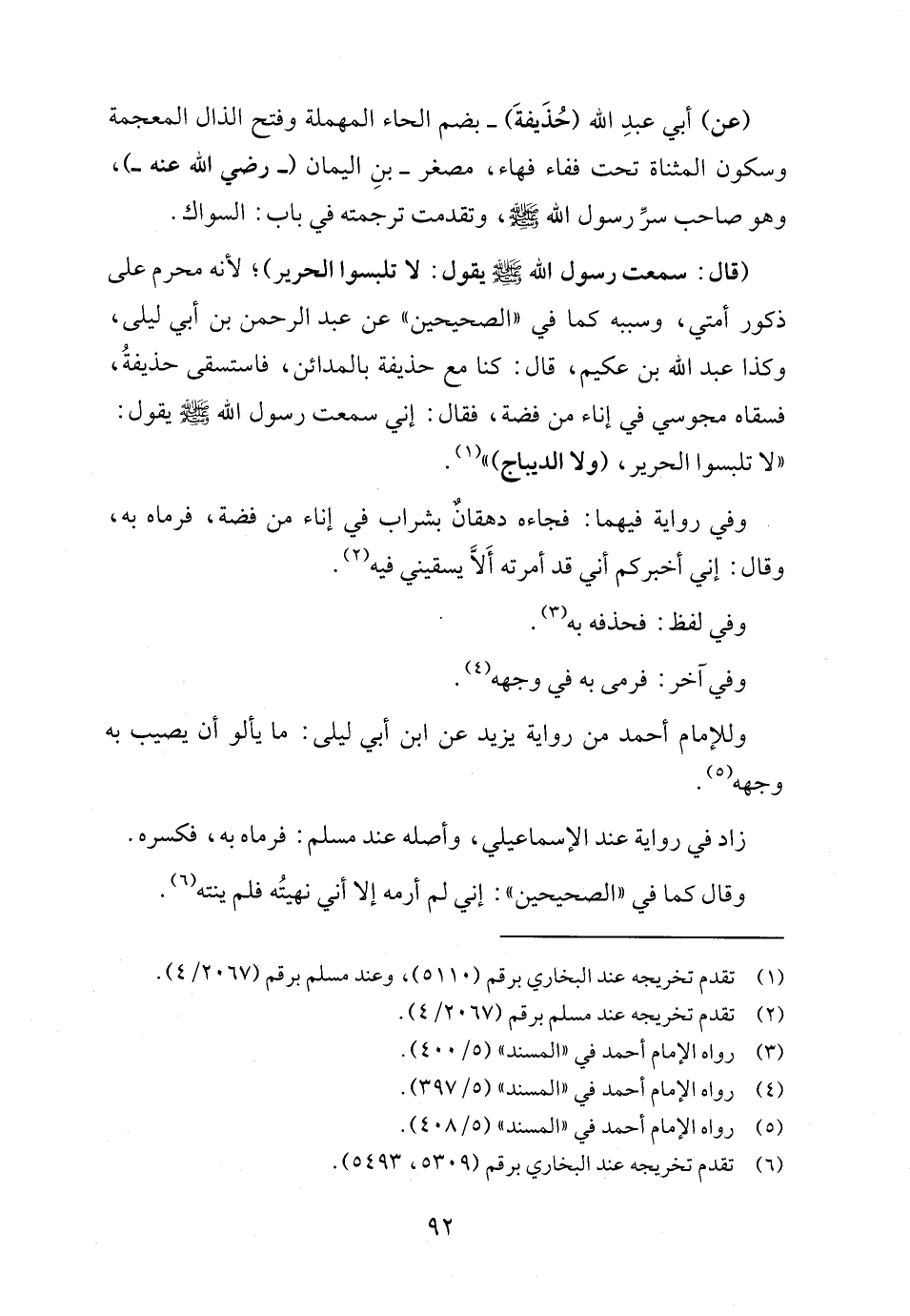 (٦) تقدم تخريجه عند البُخاري برقم (٥٣٠٩، ٥٤٩٣).