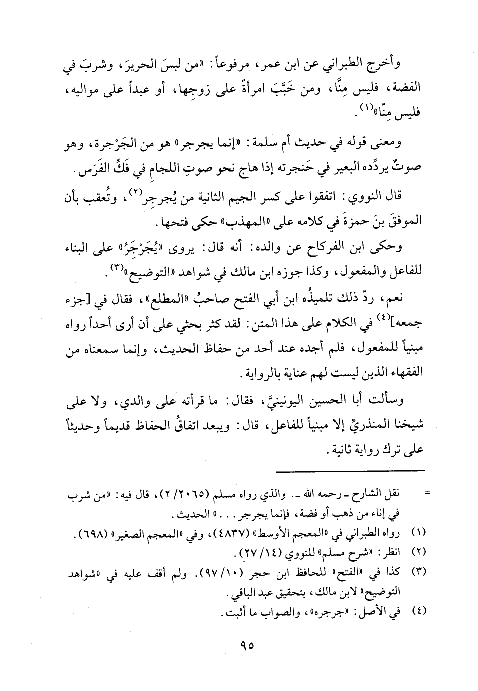 قال النووي: اتفقوا على كسر الجيم الثَّانية من يُجرجِر (٢)، وتُعقب بأن الموفقَ بنَ حمزةَ في كلامه على "المهذب" حكى فتحها.