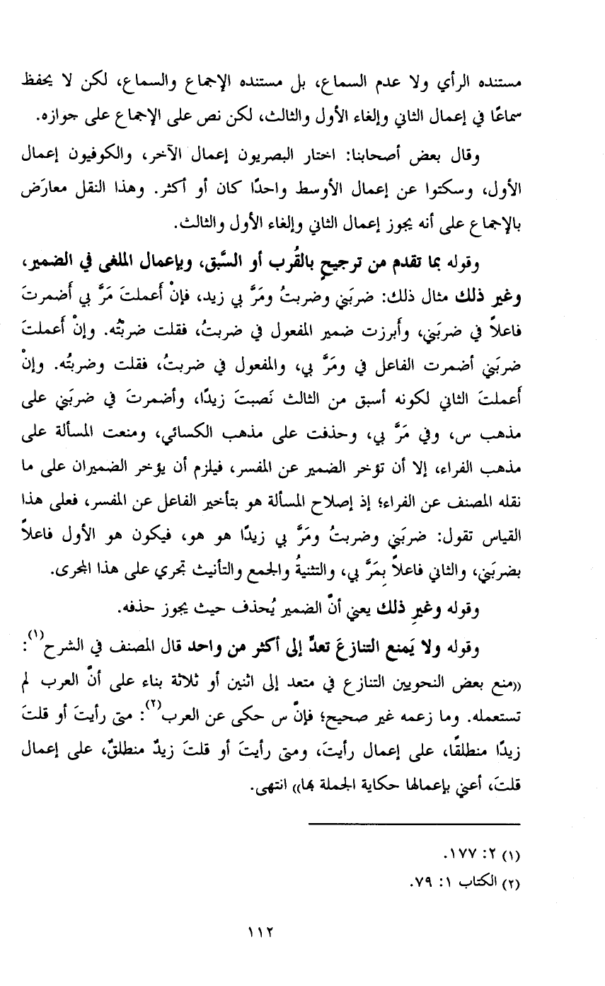 وقوله ولا يمنع التنازع تعد إلى أكثر من واحد قال المصنف في الشرح: ((منع بعض النحويين التنازع في متعد إلى اثنين أو ثلاثة بناء على أن العرب لم تستعمله. وما زعمه غير صحيح؛ فإن س حكى عن العرب: متى رأيت أو قلت زيداً منطلقاً، على إعمال رأيت، ومتى رأيت أو قلت زيد منطلق، على إعمال قلت، اعني بإعمالها حكاية الجملة بها)) انتهى.