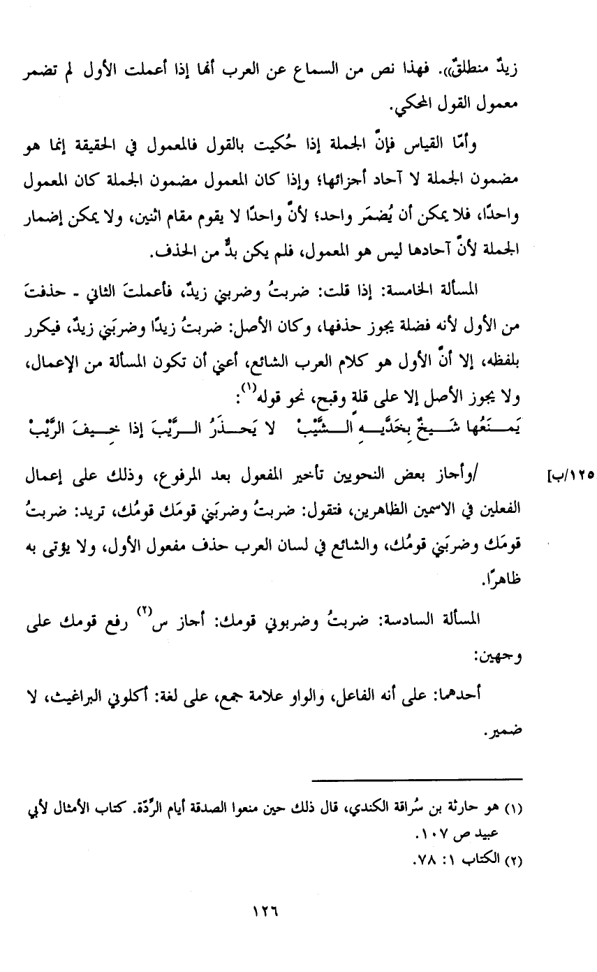 المسألة السادسة: ضربت وضربوني قومك: أجاز س رفع قومك على وجهين: