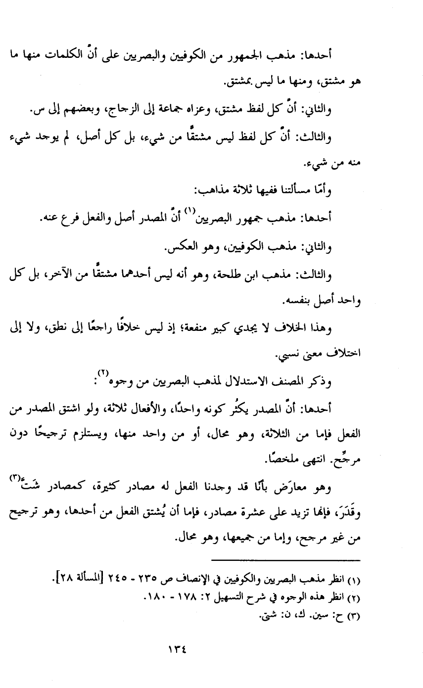 أحدها: مذهب الجمهور من الكوفيين والبصريين على أن الكلمات منها ما هو مشتق، ومنها ما ليس بمشتق.