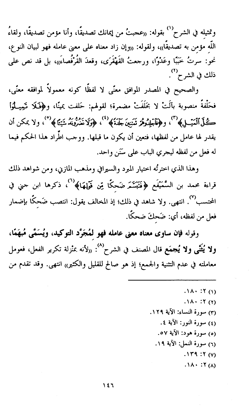 وتمثيله في الشرح بقوله: ((عجبت من إيمانك تصديقاً، وأنا مؤمن تصديقاً، ولقاء الله مؤمن به تصديقاً))، ولقوله: ((وإن زاد معناه على معنى عامله فهو لبيان النوع، نحو: سرت خبباً وعدواً، ورجعت القهقري، وقعد القرفصاء))، بل قد نص على ذلك في الشرح.