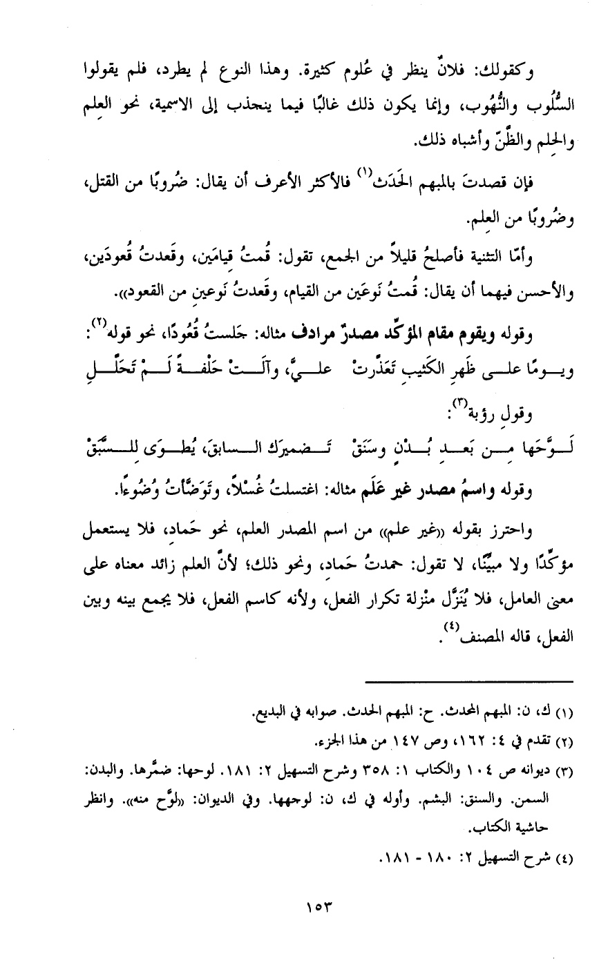 وكقولك: فلان ينظر في علوم كثيرة. وهذا النوع لم يطرد، فلم يقولوا السلوب والنهوب، وإنما يكون ذلك غالبا فيما ينجذب إلى الاسمية، نحو العلم والحلم والظن وأشباه ذلك.