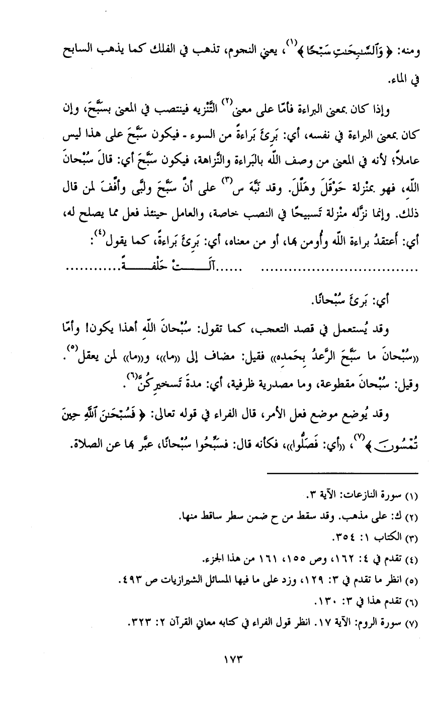 وإذا كان بمعنى البراءة فأما على معنى التنزيه فينتصب في المعنى بسبح، وإن