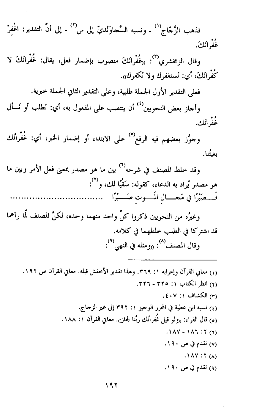 فذهب الزجاج- ونسبه السجاوندي إلى س- إلى أن التقدير: اغفر غفرانك.