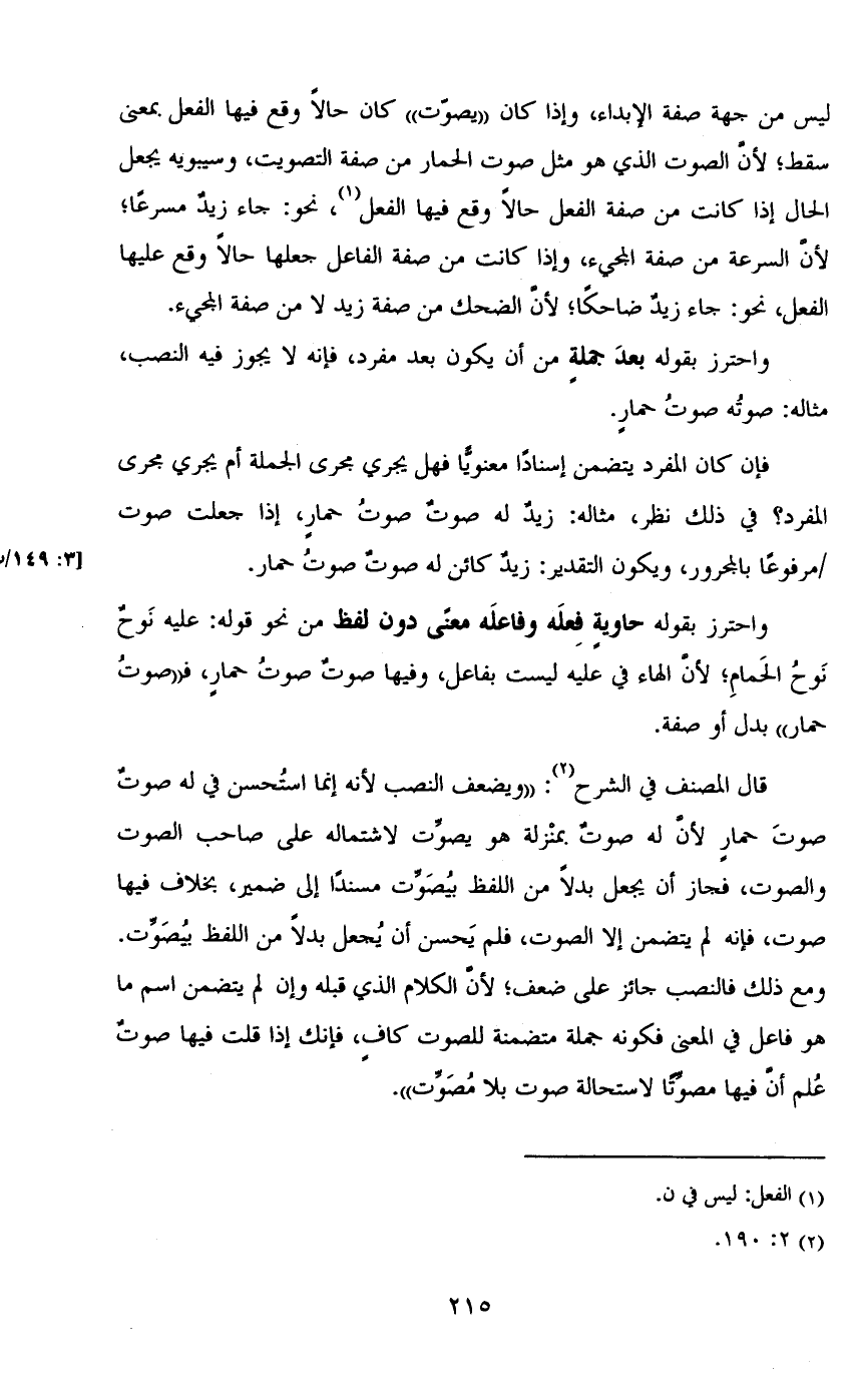 ليس من جهة صفة الإبداء، وإذا كان «يصوت» كان حالاً وقع فيها الفعل بمعنى سقط؛ لأن الصوت الذي هو مثل صوت الحمار من صفة التصويت، وسيبويه يجعل الحال إذا كانت من صفة الفعل حالاً وقع فيها الفعل، نحو: جاء زيد مسرعاً؛ لأن السرعة من صفة المجيء، وإذا كانت من صفة الفاعل جعلها حالاً وقع عليها الفعل، نحو: جاء زيد ضاحكاً؛ لأن الضحك من صفة زيد لا من صفة المجيء.