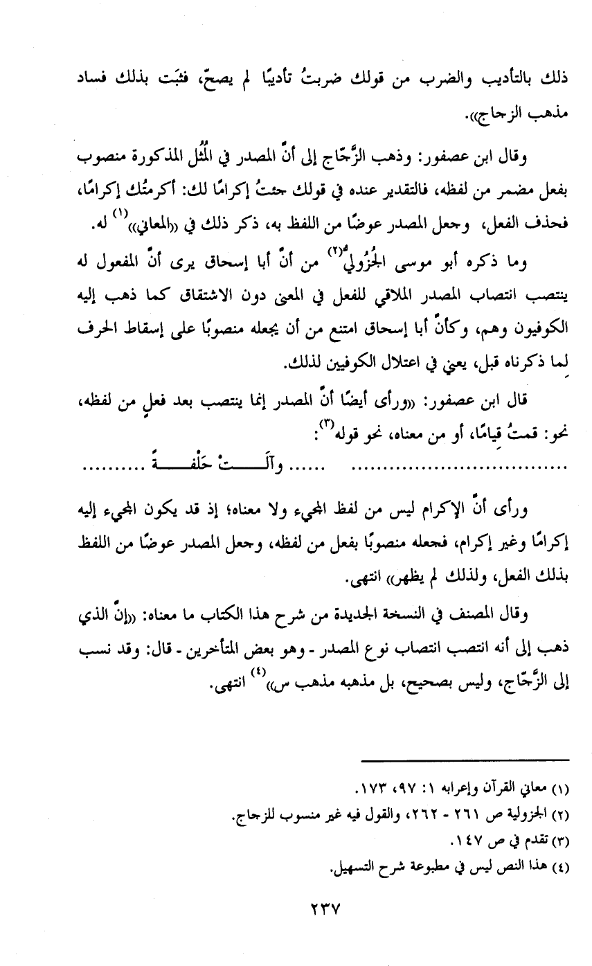 ذلك بالتأديب والضرب من قولك ضربت تأديباً لم يصح، فثبت بذلك فساد مذهب الزجاج».