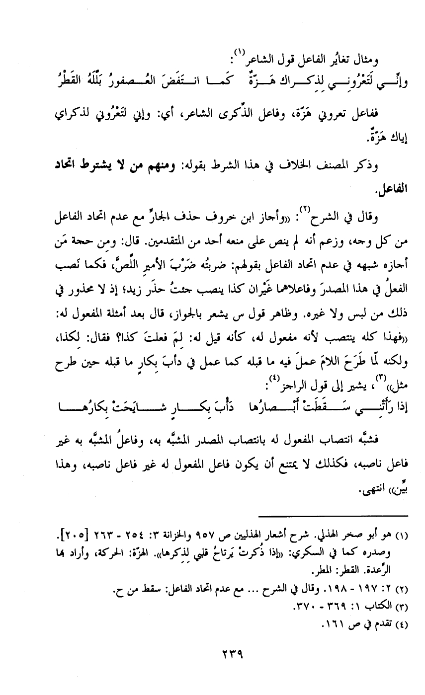 وذكر المصنف الخلاف في هذا الشرط بقوله: ومنهم من لا يشترط اتحاد الفاعل.