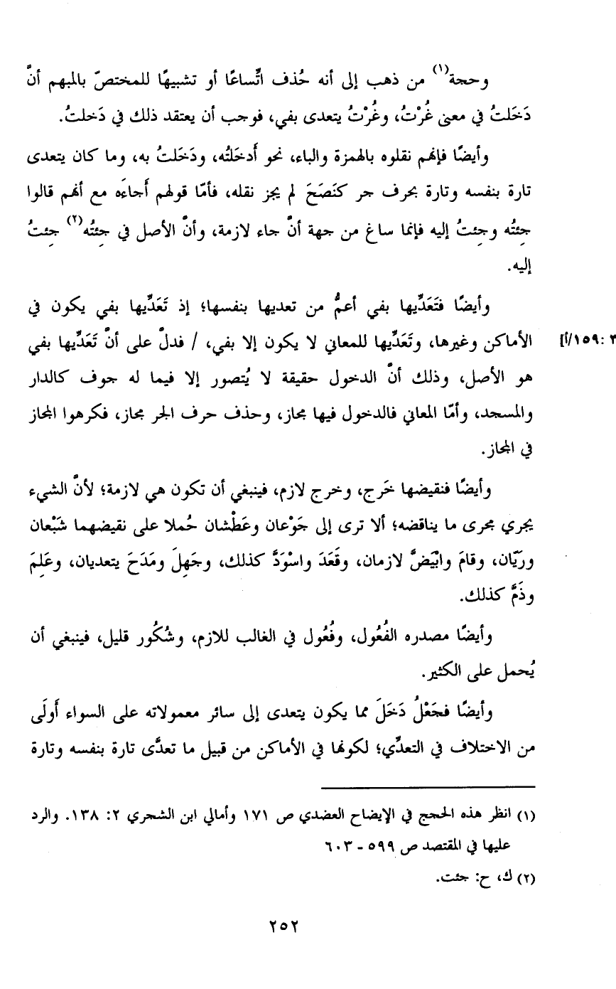 وأيضاً فتعديها بفي أعم من تعديها بنفسها؛ إذ تعديها بفي يكون في الأماكن وغيرها، وتعديها للمعاني لا يكون إلا بفي, / فدل على أن تعديها بفي هو الأصل، وذلك أن الدخول حقيقة لا يتصور إلا فيما له جوف كالدار والمسجد, وأما المعاني فالدخول فيها مجاز, وحذف حرف الجر مجاز, فكرهوا المجاز في المجاز.