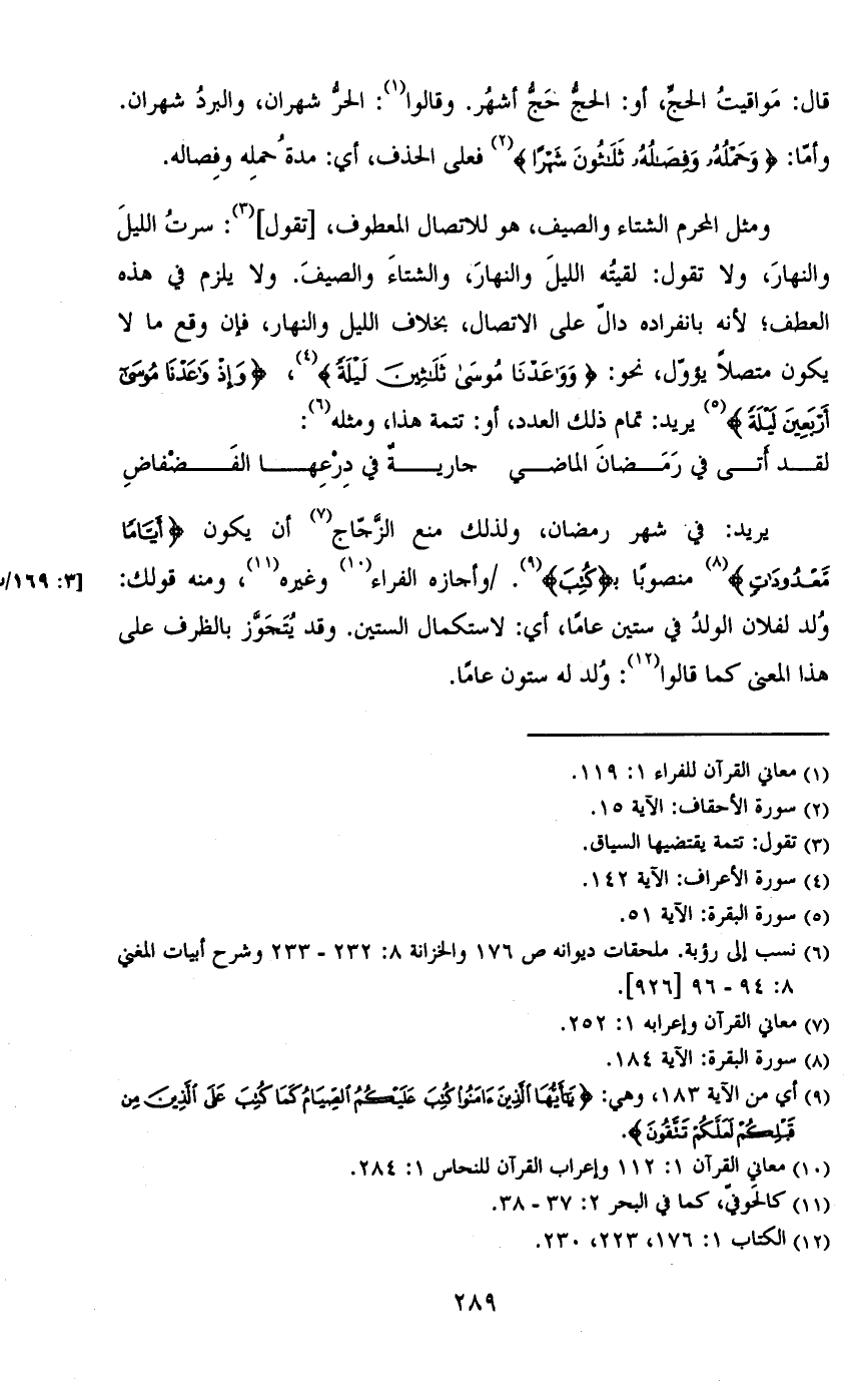 قال: مواقيت الحج، أو الحج حج أشهر. وقالوا: الحر شهران، والبرد شهران. وأما: {وَحَمْلُهُ وَفِصَالُهُ ثَلاثُونَ شَهْرًا} فعلى الحذف، أي: مدة حمله وفصاله.