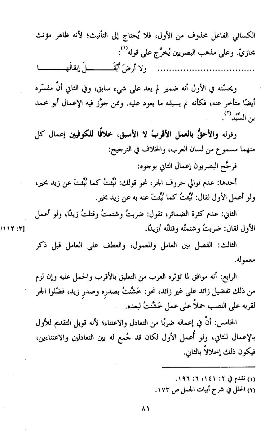 وقوله والأحق بالعمل الأقرب لا الأسبق، خلافًا للكوفيين إعمال كل منهما مسموع من لسان العرب، والخلاف في الترجيح: